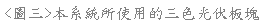 <表一>樂福公司彩色太陽能電池效率及其變化一欄(以藍(lán)色為基準(zhǔn))