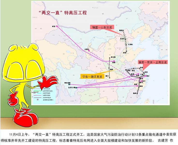 11月4日上午,“兩交一直”特高壓工程開工動員大會在京召開, 國家電網(wǎng)公司董事長、黨組書記劉振亞宣布“淮南-南京-上海、錫盟-山東、寧東-浙江”特高壓工程正式開工。這是國家大氣污染防治行動計劃12條重點輸電通道中首批獲得核準(zhǔn)并率先開工建設(shè)的特高壓工程,標(biāo)志著特高壓電網(wǎng)進(jìn)入全面大規(guī)模建設(shè)和加快發(fā)展的新階段。