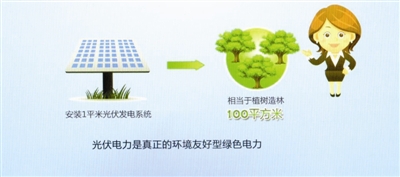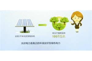 由中國(guó)可再生能源學(xué)會(huì)光伏專委會(huì)編制的《光伏發(fā)電 環(huán)境友好》科普讀本里,對(duì)光伏發(fā)電對(duì)環(huán)境的貢獻(xiàn)做了一個(gè)比較:多晶硅光伏每發(fā)1度電,在全生命周期內(nèi)產(chǎn)生的二氧化碳約為45克,而以煤為原料的火力發(fā)電每發(fā)1度電,在全生命周期內(nèi)產(chǎn)生的二氧化碳平均值則高達(dá)1000克!安裝1平方米的光伏發(fā)電系統(tǒng),就相當(dāng)于植樹(shù)造林100平方米。