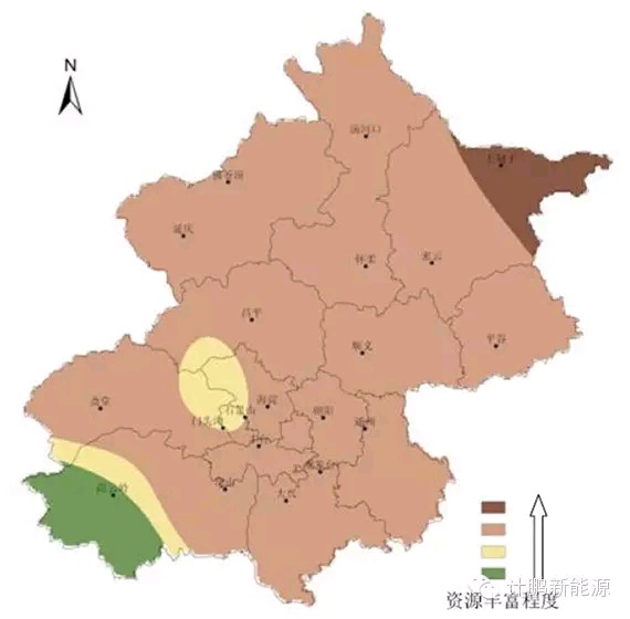 北京地區(qū)太陽(yáng)能資源分布圖如下圖所示。