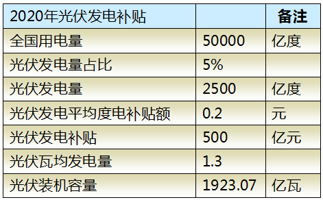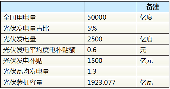 這樣即便是光伏發(fā)電量達到社會用電量的5%,光伏裝機量達到200GW,實際的光伏補貼也不過年500億而已。