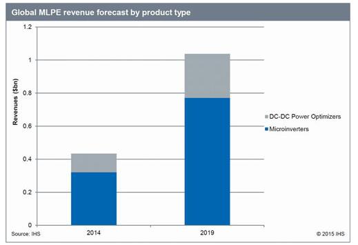 微逆變器和電源優(yōu)化器等以太陽能電池板為單位的功率電子市場展望(出處:IHS)