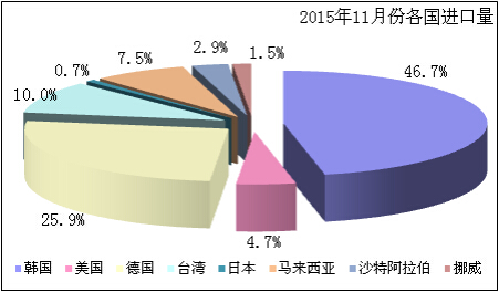 圖2 2015年11月份各國進(jìn)口量占比 數(shù)據(jù)來源:海關(guān)