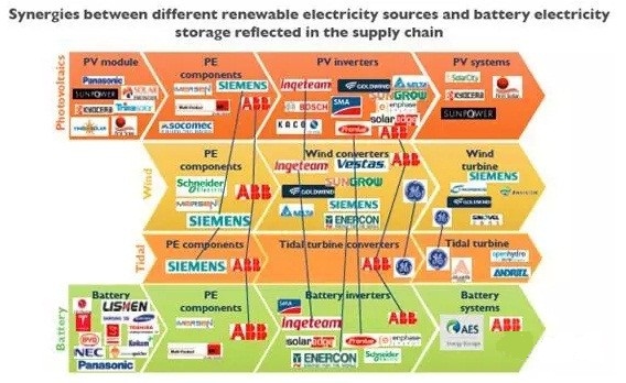 這些應(yīng)用包括:光伏和電池存儲(chǔ)、光伏和插電式混合動(dòng)力汽車充電系統(tǒng)。創(chuàng)新的技術(shù)解決方案通過(guò)提高性能、降低成本、延長(zhǎng)壽命和提高可靠性,使企業(yè)與其競(jìng)爭(zhēng)對(duì)手形成差異化。ABB、GE和Ingeteam等企業(yè)通過(guò)發(fā)揮不同可再生能源間的協(xié)同作用,以及和電池存儲(chǔ)系統(tǒng)之間的協(xié)同作用,擴(kuò)大各自在新興的相關(guān)市場(chǎng)份額。電池存儲(chǔ)系統(tǒng)可以解決大量光伏和風(fēng)能電站供電產(chǎn)生的間歇性問(wèn)題。