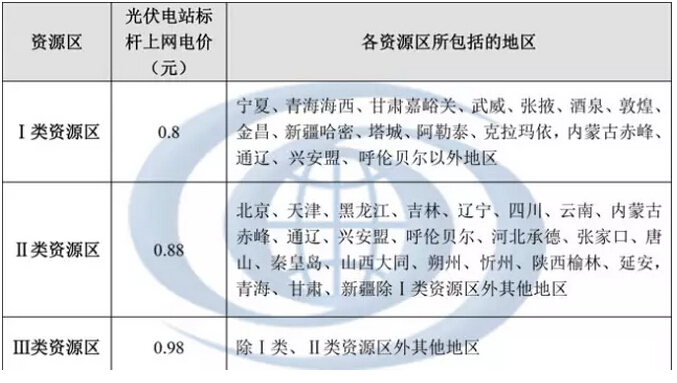 最新的全國光伏電站上網(wǎng)標(biāo)桿電價表具體如下: