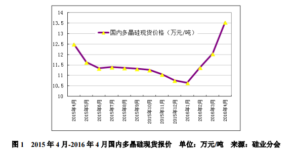 2016年3-4月份我國多晶硅價格呈“穩(wěn)步上揚”走勢,成交價從3月初的11.78萬元/噸穩(wěn)步上漲至4月底的14.36萬元/噸,增幅為21.9%。導(dǎo)致3-4月份國內(nèi)多晶硅價格一路上漲的原因有:第一,從2016年初到4月底需求一直維持增長,一季度的增長主要是由于原來未開滿的硅片企業(yè)產(chǎn)能利用率逐漸提升所致,二季度開始的需求持續(xù)旺盛才是新增硅片產(chǎn)能實質(zhì)釋放的體現(xiàn),隨著二季度產(chǎn)能的逐漸釋放,仍將繼續(xù)推動多晶硅需求增加,導(dǎo)致多晶硅價格仍有充足的上漲動力。第二,4月份受海關(guān)查獲多起多晶硅走私案件影響,下游對國內(nèi)硅料的需求量隨之增加,多晶硅供應(yīng)緊張的狀態(tài)愈發(fā)明顯,導(dǎo)致四月份國內(nèi)多晶硅價格漲幅增大。