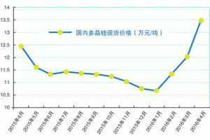 2015年4月~2016年4月國內(nèi)多晶硅現(xiàn)貨報價單位:萬元/噸 來源:硅業(yè)分會