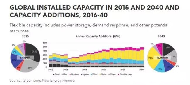 第一:到2040年,煤炭和天然氣的平均價格將降低30%。第二:中國用電需求增長的短期下滑。第三:電動車將實(shí)現(xiàn)更快速增長。第四:陸上風(fēng)電和太陽能PV成本將有所下滑。此外,我們也更新了許多用于預(yù)測的自主研發(fā)模型,包括:小規(guī)模太陽能光伏發(fā)電和儲能的consumer uptake diffusion模型,用電需求基本面模型,以及能力建設(shè)和調(diào)度模型。