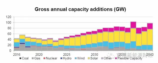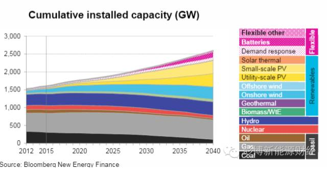 太陽能發(fā)電將實(shí)現(xiàn)劇增:尤其是太陽能發(fā)電產(chǎn)能,將由2015年的2%增至2040年的29%。太陽能發(fā)電部署將在2020-2029年期間開始增長,原因是本地部署成本將降低至全球平均水平。此外,“靈活產(chǎn)能”也將一并增長,以便適應(yīng)這種新型的多樣化發(fā)電形式。