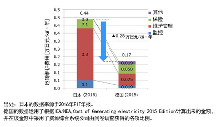 除了降低成本之外,報告書還指出了運營方面存在的課題:“日本的特點是以投資為目的導入了大量低壓(不到50kW)光伏項目”,并指出,“這些項目的發(fā)電業(yè)務意識低,以長期穩(wěn)定發(fā)電為目標的O&M(運營及維護)不充分”。該報告書提出了未來的方向:(1)基于FIT的維護義務化;(2)運用基礎設施基金對所有和運營體制再行建構;(3)在地方創(chuàng)造和培育維護產(chǎn)業(yè);(4)通過恰當?shù)谋O(jiān)控和龐大的數(shù)據(jù)存儲和分析來實現(xiàn)有效的O&M。