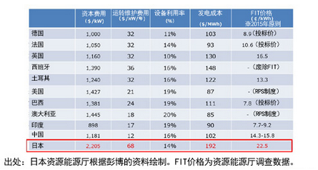 非住宅用光伏發(fā)電系統(tǒng)的國內(nèi)外價格差(出處:光伏發(fā)電競爭力強化研究會報告書)該報告書提出了目前日本國內(nèi)的光伏系統(tǒng)費用約為30萬日元/kW,是歐洲的兩倍,應該將這一費用大幅降低到市場價格的水平,以促進由FIT向自力更生的轉變的政策方向。