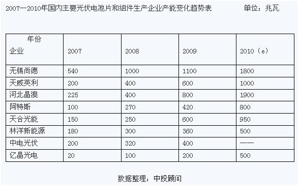 世界太陽能光伏電池片和組件的產(chǎn)能一半左右分布在中國,所以中國光伏電池片和組件行業(yè)的發(fā)展情況基本上能夠完整的反映出該行業(yè)的總體發(fā)展情況。與光伏產(chǎn)業(yè)鏈上的多晶硅行業(yè)一樣,光伏電池片和組件行業(yè)在經(jīng)歷了 2009年全球金融危機(jī)的沖擊后,2010年迎來了一輪發(fā)展機(jī)遇期,國內(nèi)各大企業(yè)紛紛擴(kuò)充產(chǎn)能以應(yīng)對市場需求的激增。無錫尚德、天威英利、河北晶澳等國內(nèi)主要太陽能光伏電池片和組件生產(chǎn)企業(yè)的產(chǎn)能擴(kuò)張速度都達(dá)到了50%以上,需要特別指出的是前不久河北晶澳取代無錫尚德成為全球最大光伏電池片生產(chǎn)商,其產(chǎn)能擴(kuò)張速度之快令人驚嘆。
