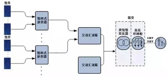 組串式逆變器是將光伏組件產(chǎn)生的直流電直接轉(zhuǎn)變?yōu)榻涣麟妳R總后升壓、并網(wǎng),逆變器的功率都相對(duì)較小。光伏電站中一般采用50kW以下的組串式逆變器。