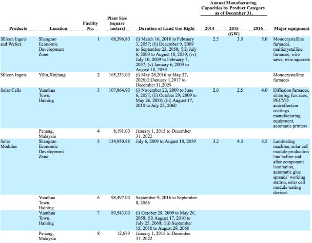 截止2016年12月31日,晶科能源共有5GW的鑄錠和切片,4GW電池片、6.5GW組件產(chǎn)能。由于組件的每W投資額度不算大,這里就折算成4.5GW的全產(chǎn)業(yè)鏈產(chǎn)能。相當(dāng)于晶科能源投資了64.87億,建立了4.5GW的全產(chǎn)業(yè)鏈產(chǎn)能,平均每W的投資額度為1.4元。