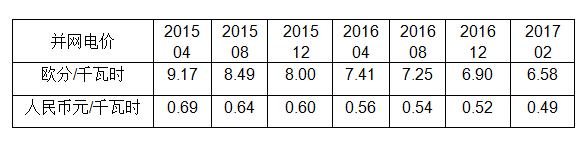 為了促使光伏發(fā)電的并網(wǎng)電價迅速下降,以減輕電力用戶的負擔(dān),德國從2015年開始,對大型光伏地面電站實行上網(wǎng)電價招標制:最低價者中標,按中標的電力價格售電,20年不變。從2015年4月到2017年2月,在不到兩年的時間里,招標制促使德國大型地面光伏電站的并網(wǎng)電價下降了28.2%。