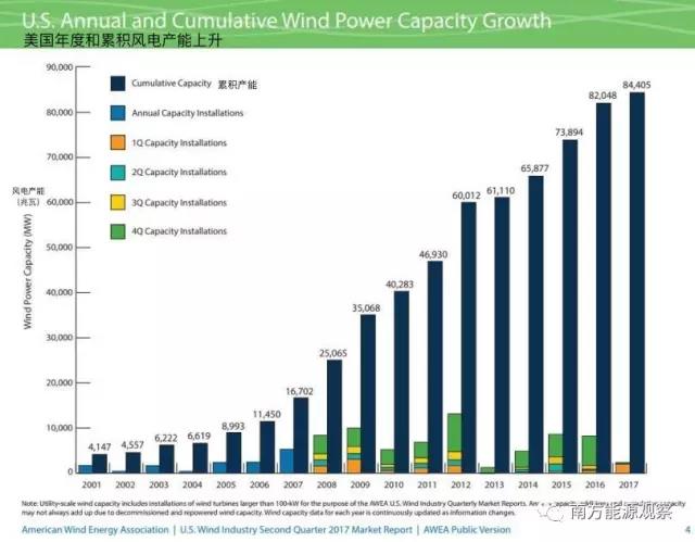 ●這一容量來(lái)自于安裝在美國(guó)50個(gè)州,哥倫比亞特區(qū),關(guān)島,波多黎各和美屬維爾京群島的大約77,000渦輪機(jī)。
