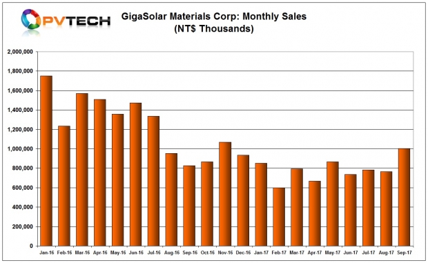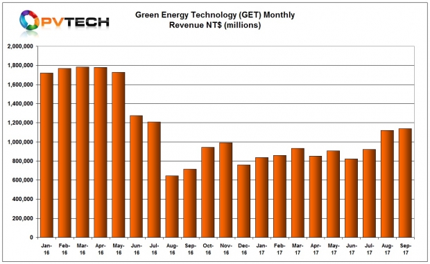 綠能科技公布其2017年9月份的營收額為11.37億新臺幣(約合3760萬美元),相較于上個(gè)月增長1.7%。