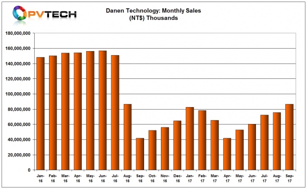 多晶硅硅片制造商達(dá)能科技的銷售額自從2017年4月份出現(xiàn)大幅下跌后,正處于恢復(fù)階段。
