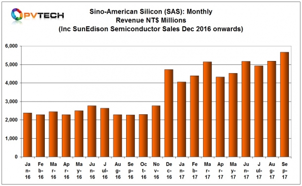 主流集成光伏制造商中美矽晶的營收額在2017年9月份達(dá)到新高,主要受到半導(dǎo)體多晶硅的市場需求和太陽能產(chǎn)業(yè)內(nèi)硅片、電池和組件產(chǎn)品的市場需求促進(jìn)。