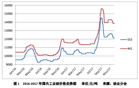 中旬,工業(yè)硅價(jià)格呈回落態(tài)勢,價(jià)格下滑主要集中在冶金級牌號。天津港、昆明地區(qū)553、441、3303牌號較月初下調(diào)200-300元/噸不等。價(jià)格下滑受以下幾點(diǎn)因素影響:1.需求不足,11月市場成交量不溫不火,多晶硅、有機(jī)硅采購量平穩(wěn),鋁合金用戶或是尚有庫存可維持生產(chǎn),或是沒有到采購期,11月成交量不多。同時(shí)在國家嚴(yán)控環(huán)保的大趨勢下,北方受霧霾天氣影響,山東、山西、河南等地的鋁加工工廠面臨較大環(huán)保壓力,開工不足,冶金級硅需求差強(qiáng)人意;2.庫存高位,截至10月底國內(nèi)主要港口及交易地的金屬硅儲(chǔ)量同比均偏高,加之枯水期利多因素還未完全顯現(xiàn),硅價(jià)回落在情理之中。3.合盛硅業(yè)新廠即將開爐給市場參與者對價(jià)格的預(yù)期帶來一定恐慌心理。