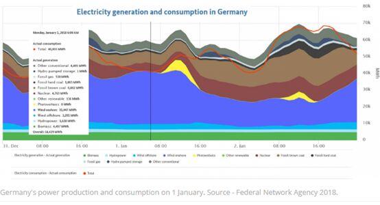 2018年新年第一天,德國在能源轉(zhuǎn)型過程中跨越了象征性的里程碑,可再生能源首次短暫覆蓋了全部用電量。去年全年,全球第四大經(jīng)濟(jì)體對可再生能源需求總量的貢獻(xiàn)率達(dá)到36.1%。但是,德國在減排方面的進(jìn)展連續(xù)三年停滯不前,可能會讓自己設(shè)定的2020年氣候目標(biāo)遙不可及! 「鶕(jù)聯(lián)邦網(wǎng)絡(luò)機(jī)構(gòu)提供的數(shù)據(jù),1月1日上午6點左右,在
