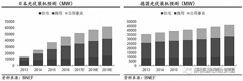 引入競價(jià)制度,總體需求穩(wěn)定:日本于2017 年10 月引入太陽能競標(biāo)制度,德國則終結(jié)FiT 補(bǔ)貼,兩國積極實(shí)行競價(jià)代替補(bǔ)貼政策,推動光伏平價(jià)上網(wǎng)。二者政策波動不大,預(yù)計(jì)未來裝機(jī)量仍會穩(wěn)中有增。