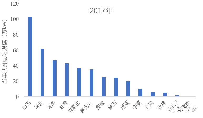 2017年,國家扶貧辦將光伏扶貧集中給了扶貧效率更高的村級電站(含戶用),扶貧范圍也擴(kuò)大到14省236個縣,總規(guī)模為418.62萬kW。