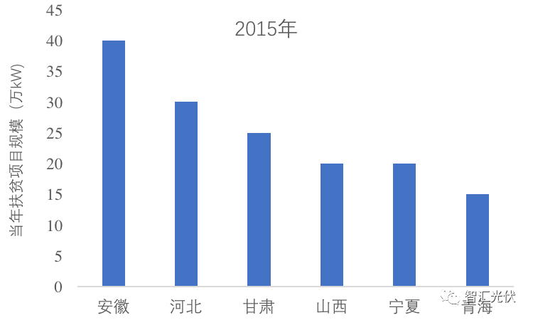 2015年,在河北、山西、安徽、甘肅、寧夏、青海6省(區(qū))開展試點(diǎn),每個省(區(qū))各選取5個貧困縣進(jìn)行光伏扶貧試點(diǎn)。