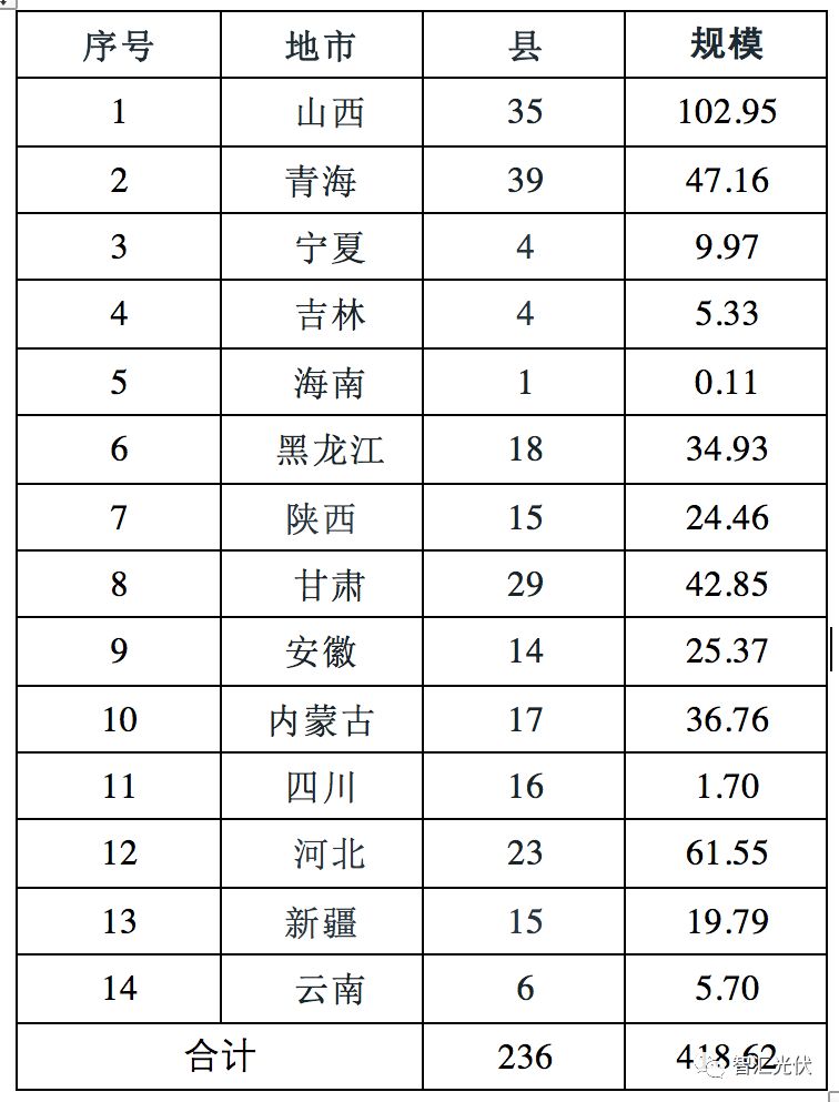 三年來,光伏扶貧的總規(guī)模達(dá)到1084.62萬kW,共涉及21各省。其中,光伏扶貧規(guī)模最大的為山西省,其次為河北、安徽、山東三省。具體如下表所示。