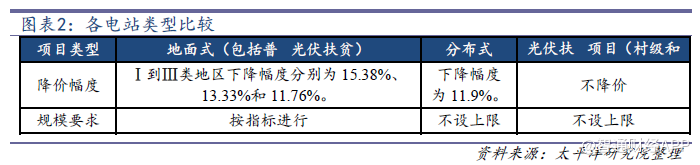 通知中一個(gè)最大的變化是電價(jià)的調(diào)價(jià)時(shí)間窗口,明確自2019年起,納入財(cái)政補(bǔ)貼年度規(guī)模管理的光伏發(fā)電項(xiàng)目全部按投運(yùn)時(shí)間執(zhí)行對(duì)應(yīng)的標(biāo)桿電價(jià)。也就是說,從2019年開始將沒有630搶裝的概念,調(diào)價(jià)的時(shí)間窗口將全部集中在年末。這也意味著進(jìn)入2018年的年度規(guī)模管理的光伏發(fā)電項(xiàng)目只有在2018年年底并網(wǎng)投運(yùn)才能享受2018年的電價(jià)補(bǔ)貼政策,我們認(rèn)為此舉會(huì)加速進(jìn)入2018年管理指標(biāo)的光伏項(xiàng)目的并網(wǎng)速度,2018年的普通地面的裝機(jī)需求或?qū)⒊绞袌鲱A(yù)期。
