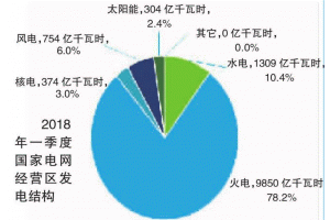 一季度,國家電網(wǎng)經(jīng)營區(qū)發(fā)電量12590億千瓦時,增速為9.0%,實現(xiàn)較快增長。其中,水電、火電、核電、風電、太陽能發(fā)電量增速分別為-1.2%、7.2%、10.5%、46.0%和71.4%,風電、太陽能發(fā)電增長迅速;痣姲l(fā)電量占全部發(fā)電量的比重為78.2%,同比下降1.4個百分點。