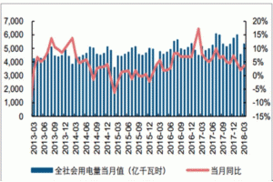2018年1-3月,我國全社會(huì)用電量15878億千瓦時(shí),同比增長9.8%,增速比上年同期提高 2.9個(gè)百分點(diǎn)。3月,全社會(huì)用電量5325億千瓦時(shí),同比增長3.6%,增速比上年同期回落4.3個(gè)百分點(diǎn)。