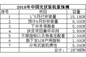 如果按SolarWit統(tǒng)計(jì)來算,預(yù)計(jì)2018年國(guó)內(nèi)光伏裝機(jī)量接近40GW。其中下半年約為16.8GW,包括領(lǐng)跑者5GW、扶貧項(xiàng)目3.8GW、不限指標(biāo)及特高壓配套2GW、戶用新增1GW、分布式5GW。