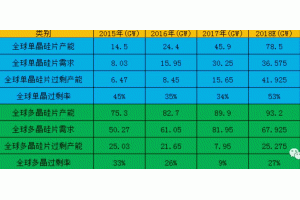 這就是從2015年至今,全球單晶硅片和多晶硅片的過剩率情況匯總數(shù)據(jù)。