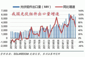 上半年,中國光伏新增裝機(jī)不足12GW,但是行業(yè)并未受到嚴(yán)重影響,因?yàn)楹M馐袌鼋衲晟习肽甑难b機(jī)量增幅較高。上半年,光伏電池產(chǎn)量同比增長16.4%,出口同比增長83.9%;7月,我國光伏組件出口同比增長58.11%。