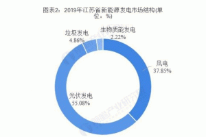 從新能源發(fā)電結構來看,截至2019年11月,江蘇省風電裝機容量1011.09萬千瓦,占新能源總裝機容量的37.85%;太陽能光伏發(fā)電裝機容量1471.50萬千瓦,占新能源總裝機容量的55.08%;垃圾發(fā)電裝機容量129.77萬千瓦,占新能源總裝機容量的4.86%;生物質發(fā)電裝機容量59.30萬千瓦,占新能源總裝機容量的2.22%。