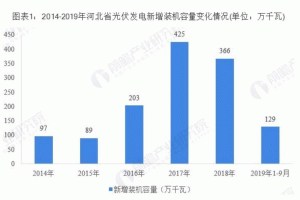 據(jù)國家能源局統(tǒng)計數(shù)據(jù)顯示,2014年,河北省累計裝機容量僅150萬千瓦,到2018年,全省光伏發(fā)電累計裝機容量突破1000萬千瓦,達到1234萬千瓦,同比增長42.2%。從增長速度來看,2014-2015年,江蘇省光伏發(fā)電新增裝機容量均在100萬千瓦以下水平,到2016-2018年,增長迅速,2018年達到366萬千瓦,同比下降13.9%。截至2019年第三季度,全省光伏發(fā)電新增裝機容量為129萬千瓦,累計裝機容量達到1363萬千瓦。排名全國第三位,僅次于山東和江蘇。
