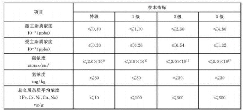 表2 太陽能級多晶硅(GB/T 25074-2017)技術指標
