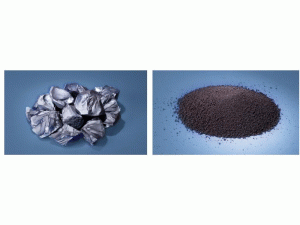 硅烷流化床法制備的顆粒硅(右)