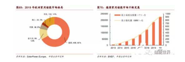 隨著歐洲各國加速能源結(jié)構(gòu)調(diào)整,家用儲能市場快速發(fā)展。目前,歐洲已成為全球最大的家用儲能市場。根據(jù) SolarPower Europe 數(shù)據(jù)顯示,2019 年歐洲家用儲能新增裝機(jī)量達(dá)到 745MWh,同比增長 57%;累計裝機(jī)量達(dá)到 1997MWh,同比增長60%。