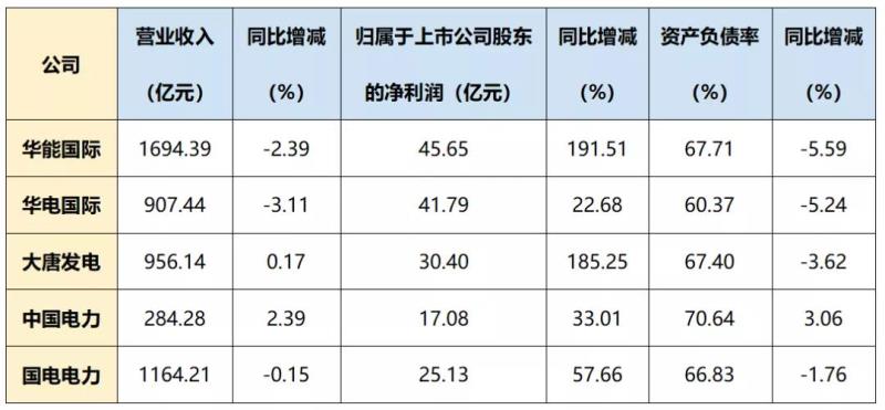 資產(chǎn)負(fù)債率方面,華能?chē)?guó)際、華電國(guó)際、大唐發(fā)電、國(guó)電電力分別減少5.59%、5.24%、3.62%、1.76%,中國(guó)電力資產(chǎn)負(fù)債率增加3.06%。
