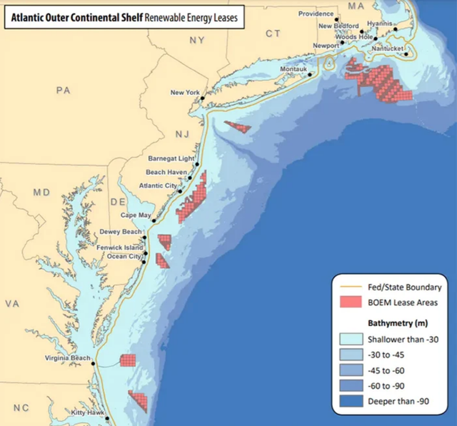 上圖:開發(fā)商已經(jīng)持有美國東海岸幾個地區(qū)的風(fēng)能租約。