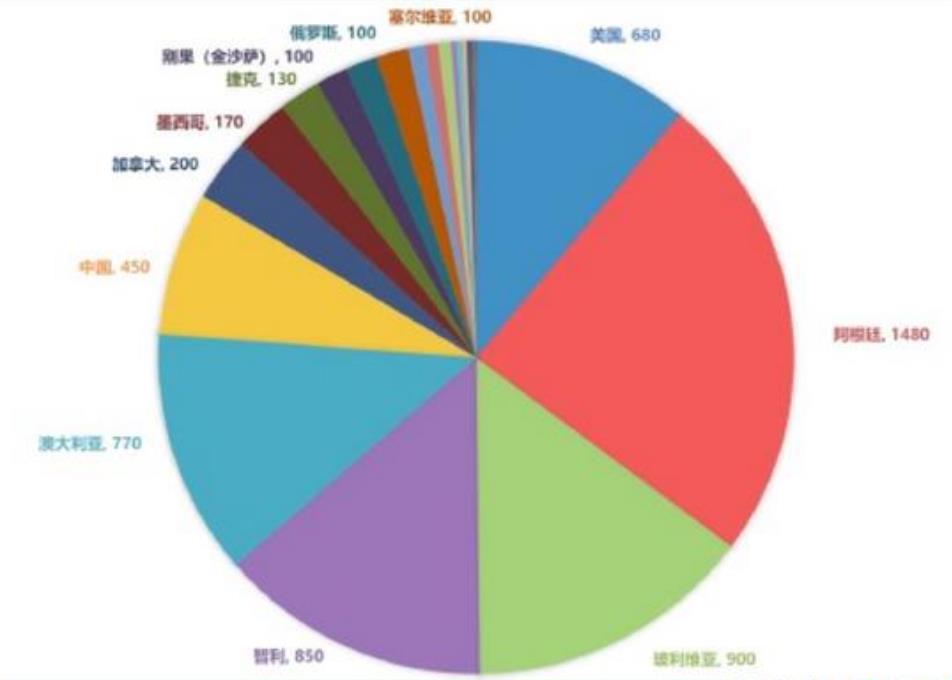 圖2:全球探明鋰資源儲(chǔ)量國(guó)別占比
