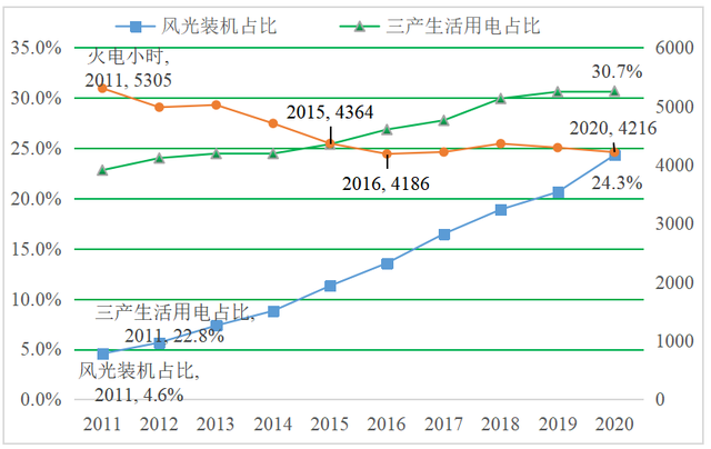 圖1 發(fā)用電結(jié)構(gòu)變化和火電小時2011-2020