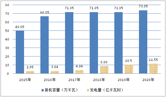 圖2 2015-2020年嘉峪關(guān)市光伏發(fā)電裝機容量和發(fā)電量