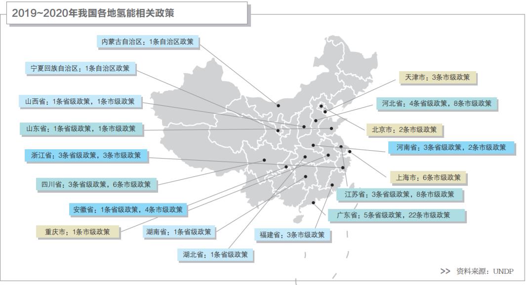 仍然看數(shù)據(jù),2020年上半年,國(guó) 家層面出臺(tái)了7項(xiàng)相關(guān)政策,地方層 面共出臺(tái)了30條氫能產(chǎn)業(yè)扶持政策; 2021年1~3月,國(guó)家層面出臺(tái)了6項(xiàng) 相關(guān)政策,地方層面的政策則高達(dá)34 條。
