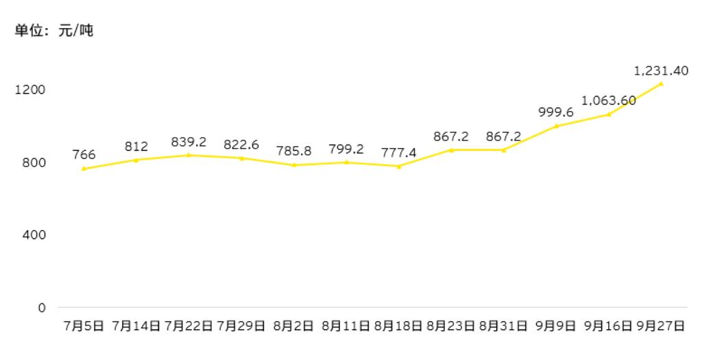 圖4:2021年7月-9月我國動(dòng)力煤期貨價(jià)格走勢