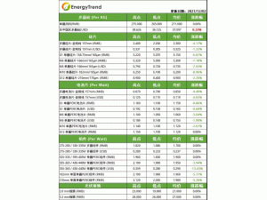 本周硅料報價弱勢維穩(wěn),硅料成交壓力激增。本周大部分企業(yè)開始洽談12月份新訂單,由于下游近期不斷出現(xiàn)下調(diào)的信號,降價壓力也不斷傳導(dǎo)至硅料環(huán)節(jié),部分企業(yè)對老客戶訂單的報價已出現(xiàn)小幅松動跡象。目前下游持續(xù)出清庫存,采購觀望情緒較濃,本周硅料成交體量較小。部分一線料企出于供需狀況考慮,仍不愿調(diào)整報價,尚無庫存壓力。目前整體硅料價格無明顯波動,單晶用料的均價維持在271元/KG。受國內(nèi)硅料報價持穩(wěn)及匯率小幅波動影響,海外硅料價格持續(xù)堅挺,近期價格在37美元/KG左右。