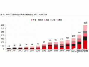 預(yù)計2021/22/25 年全球光伏新增裝機望達(dá) 160/210/350GW,未來 5-10 年 CAGR 有 望維持 20%-25%。