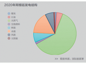 阿根廷電力生產(chǎn)主要以天然氣發(fā)電為主,水能、核能和風(fēng)能次之。截至2020年年底,天然氣發(fā)電量占比達(dá)到60.89%,水能發(fā)電量次之,占比為16.74%;核能發(fā)電量第三,占比為7.39%,風(fēng)能發(fā)電量的占比為6.49%;茉矗66.89%)仍然“主宰”阿根廷電力生產(chǎn);可再生能份額持續(xù)提升,占比(25.73%)超過四分之一。由于天然氣供應(yīng)的不確定性,目前阿根廷的燃?xì)獍l(fā)電面臨供應(yīng)缺口。